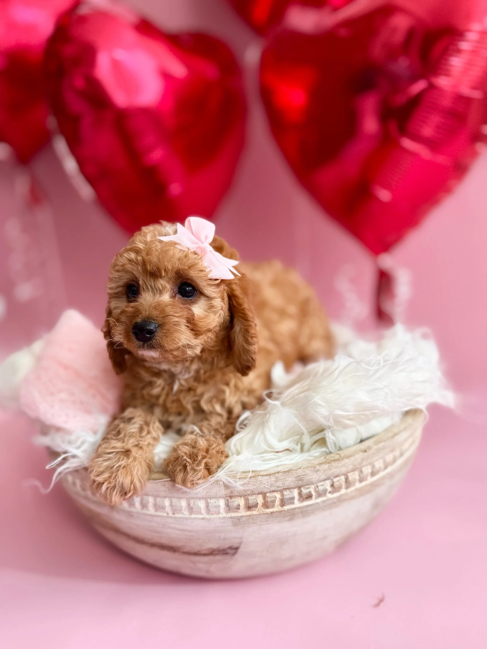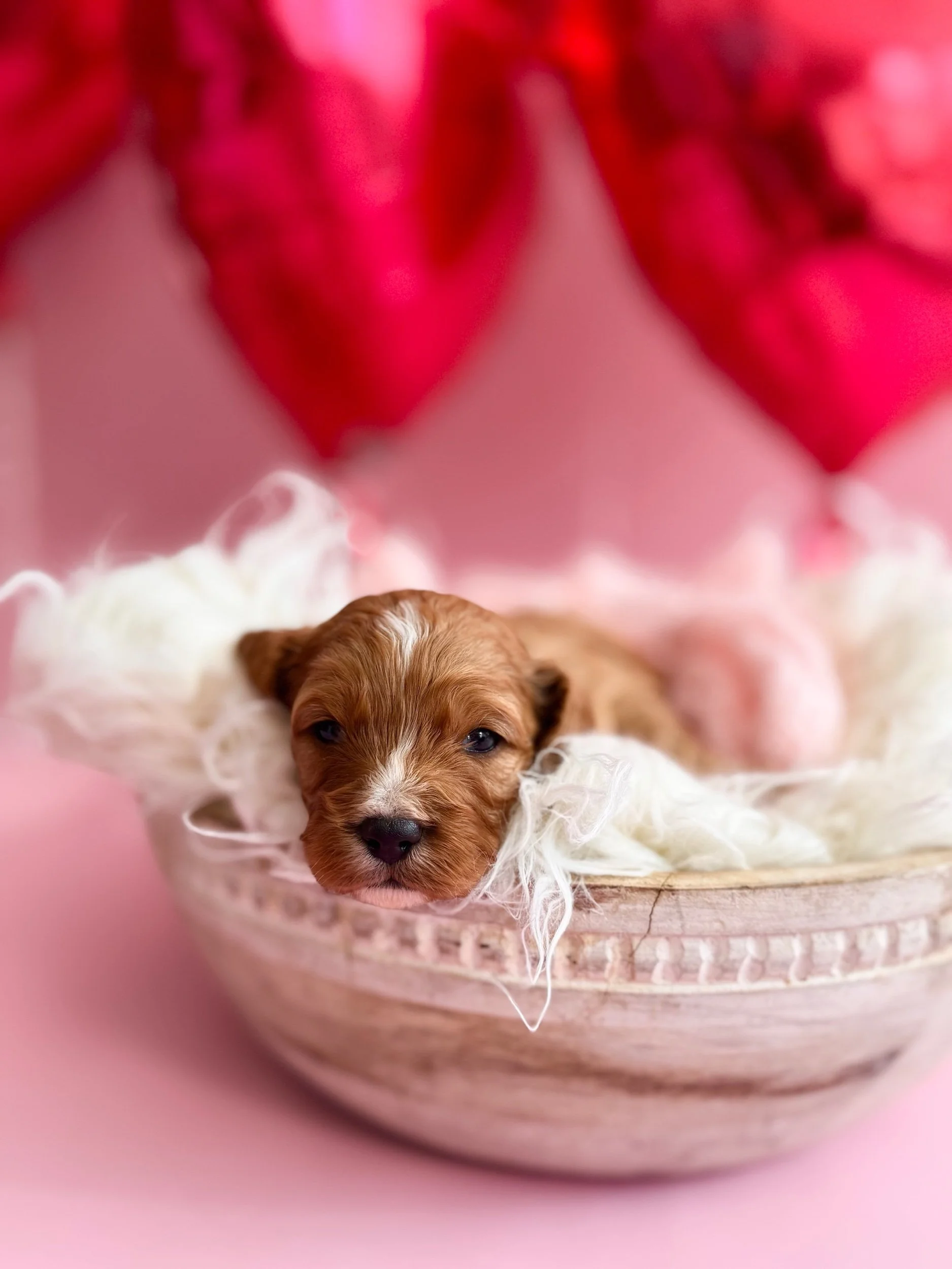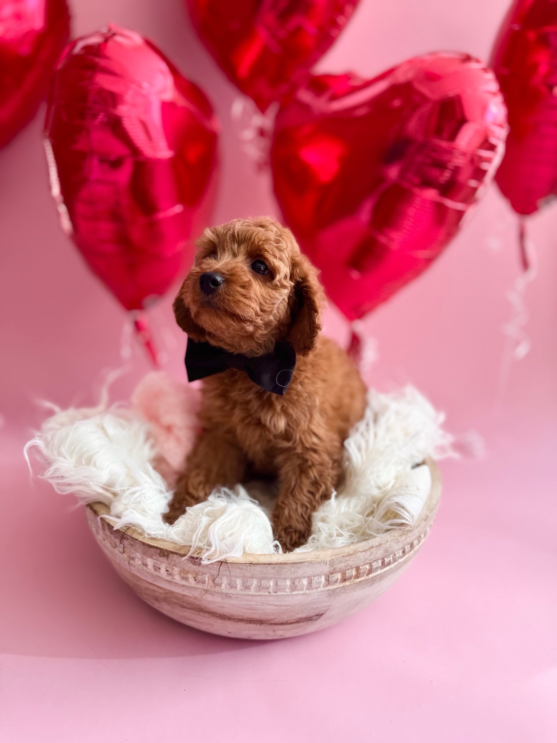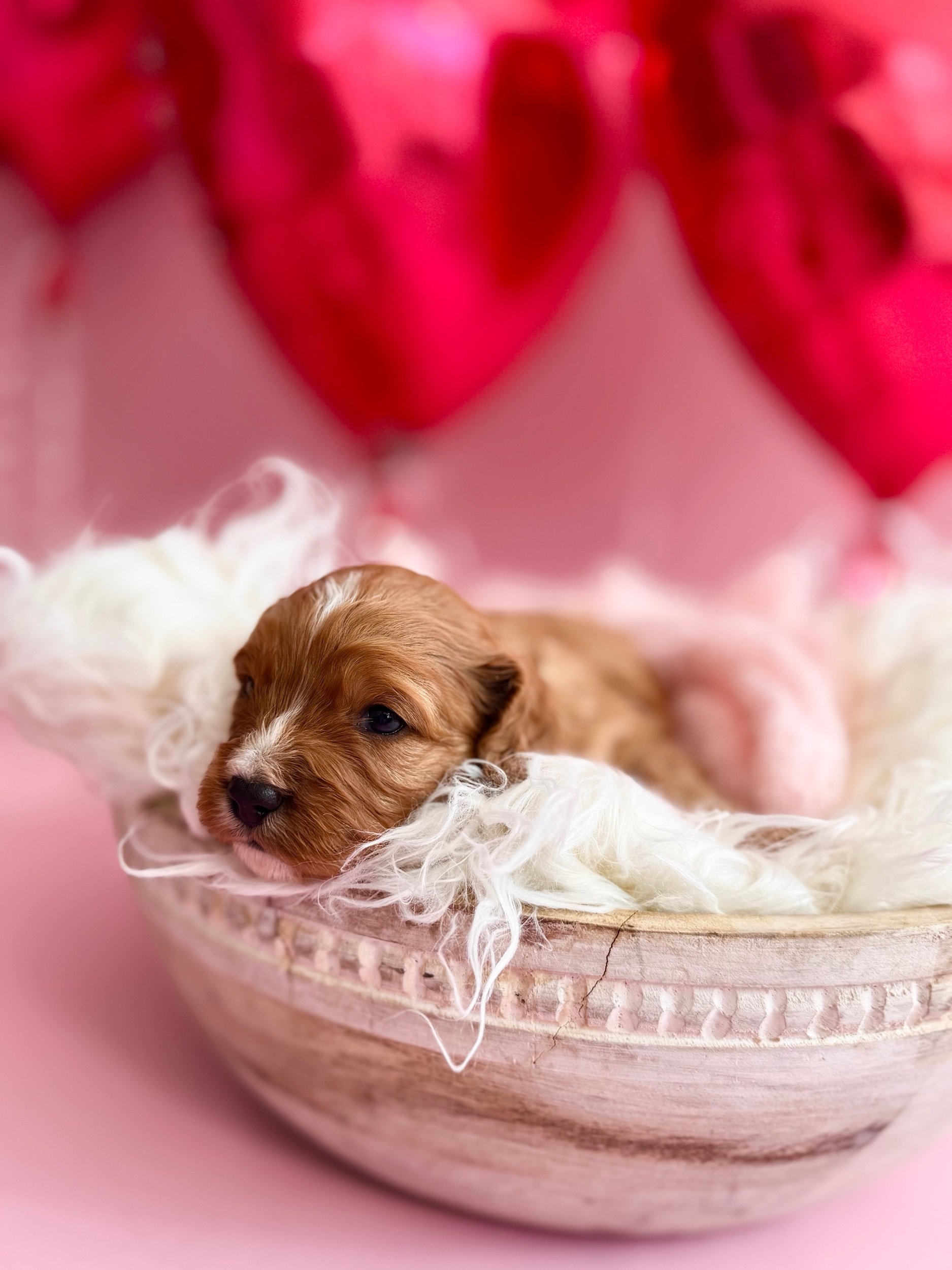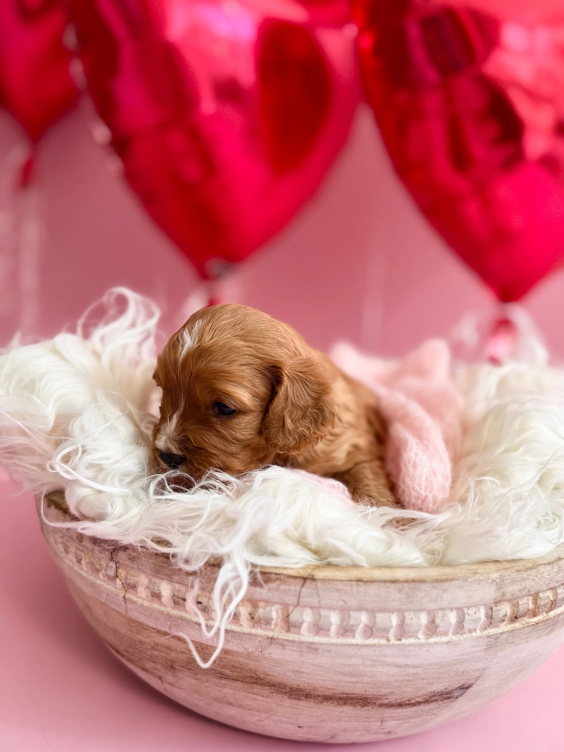 Beckett is an adorable F1 Miniature Cavapoo (50% Cavalier King Charles Spaniel & 50% Miniature Poodle). His birthday is January 21st, 2026, and he will be ready to meet his new family on March 23rd, 2026. Beckett is confident, affectionate, and loves companionship—he enjoys sticking close by, picking up on routines quickly, and settling in for snuggles once playtime winds down. He had a good first exam with our vet and is currently on Interceptor Plus for parasite prevention. Beckett is projected to be 14–25 lbs when grown.