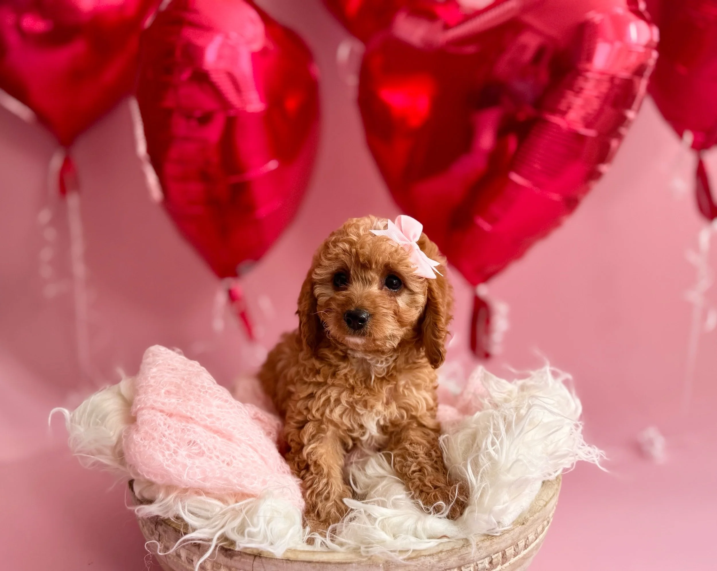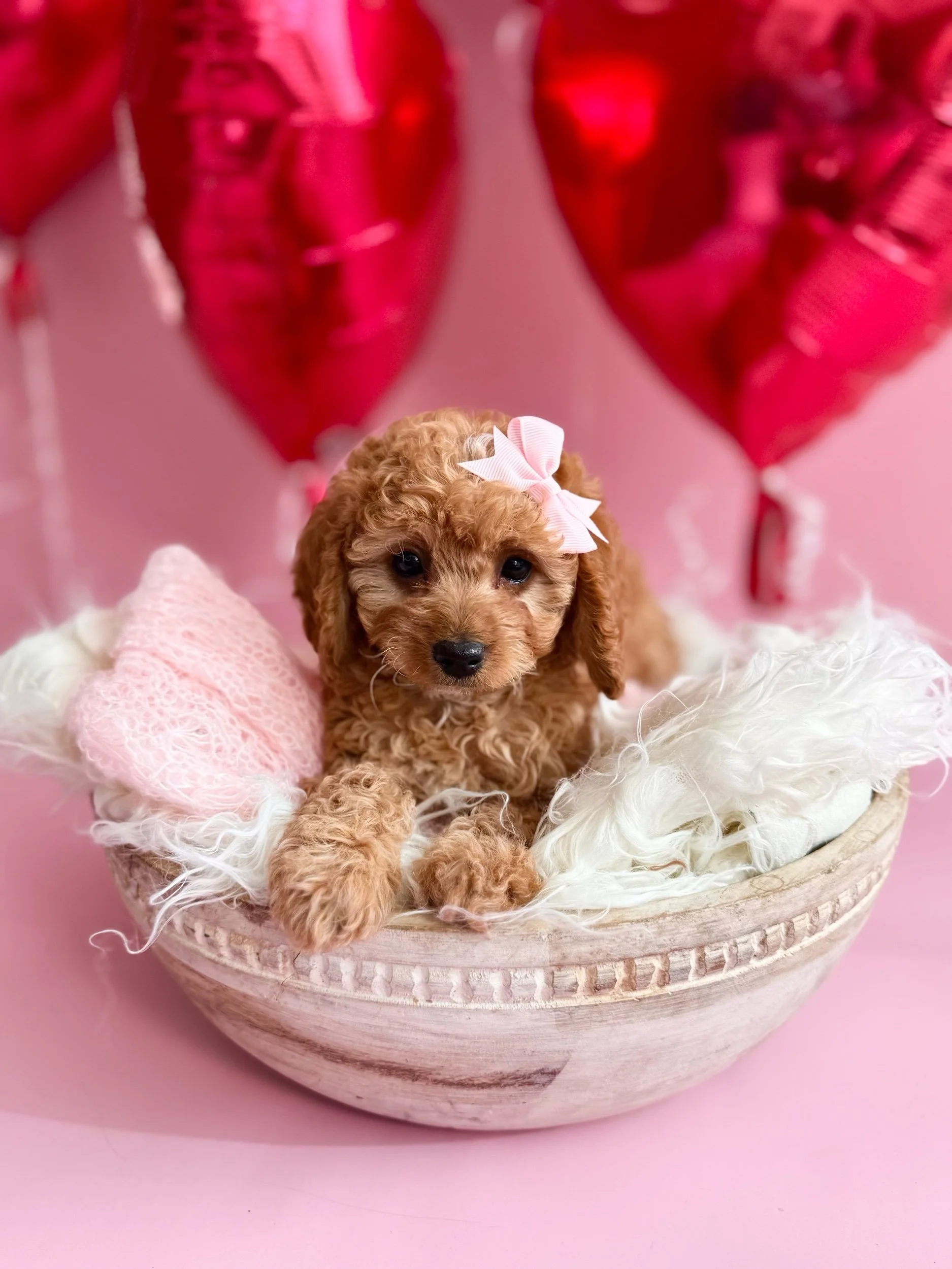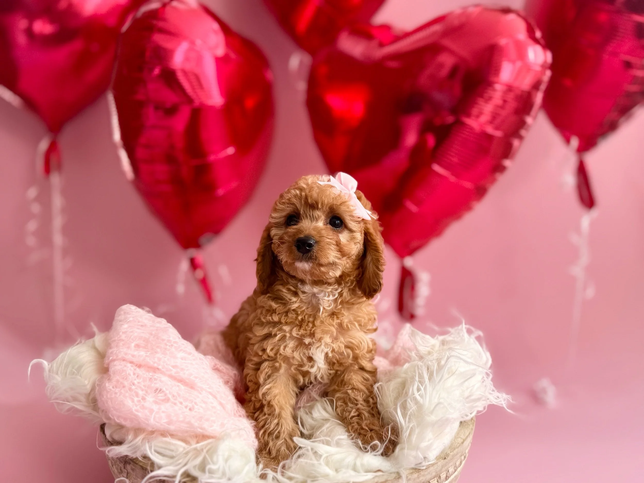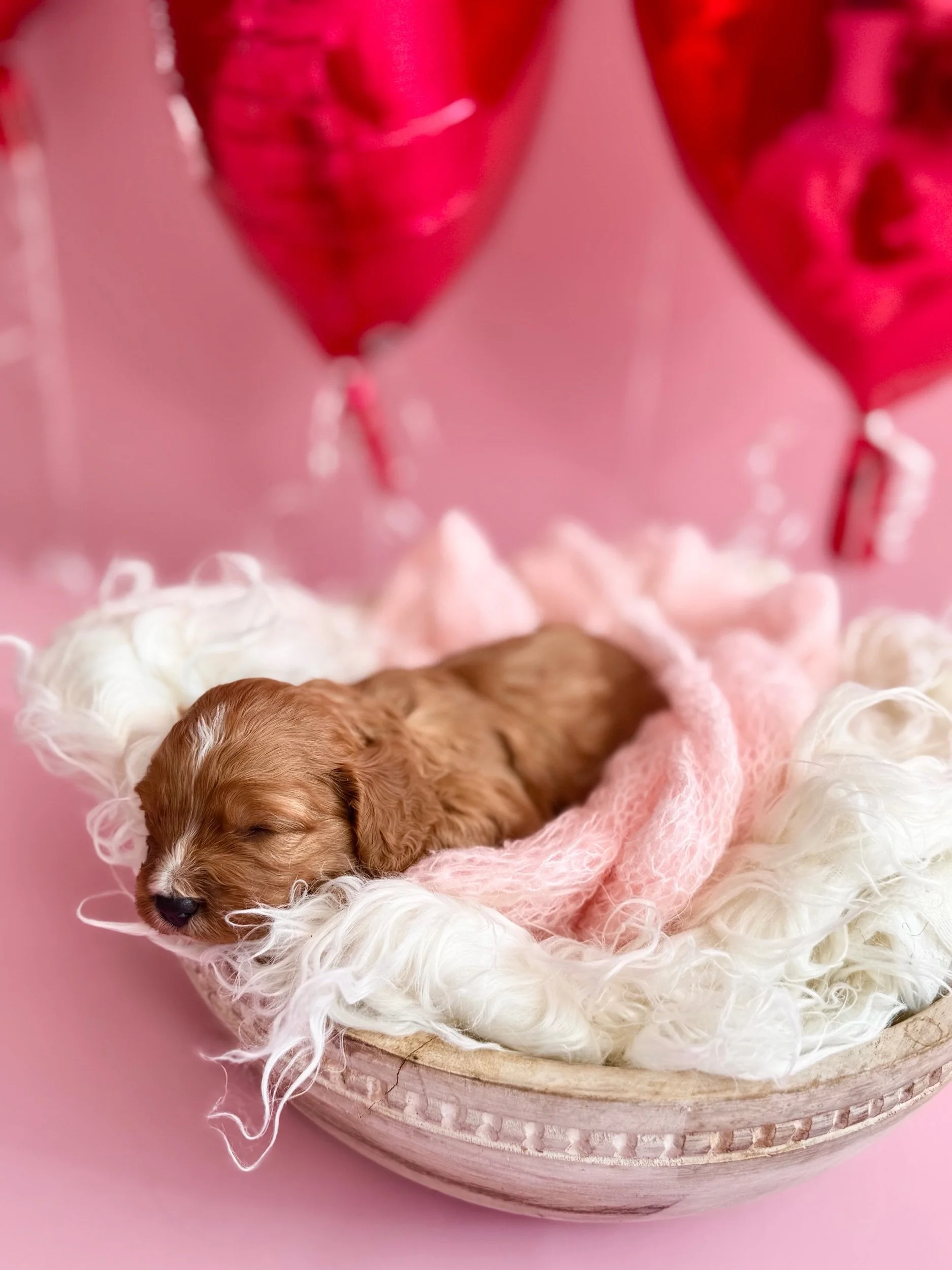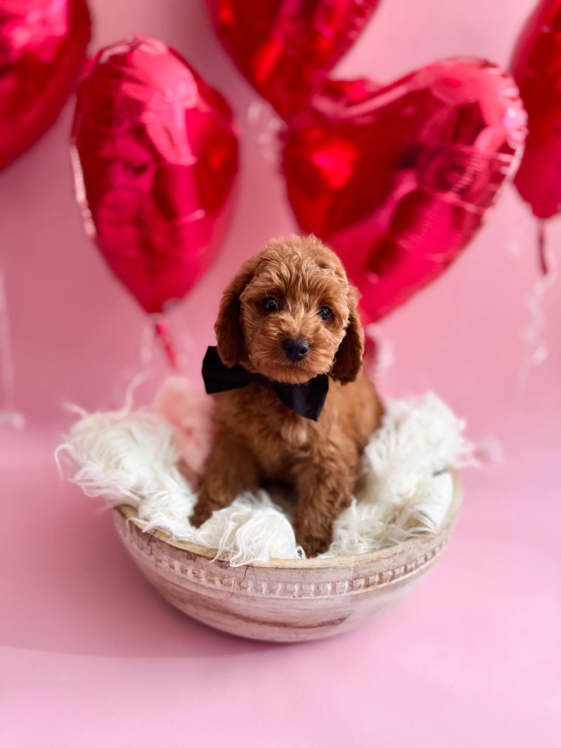 Beckett is an adorable F1 Miniature Cavapoo (50% Cavalier King Charles Spaniel & 50% Miniature Poodle). His birthday is January 21st, 2026, and he will be ready to meet his new family on March 23rd, 2026. Beckett is confident, affectionate, and loves companionship—he enjoys sticking close by, picking up on routines quickly, and settling in for snuggles once playtime winds down. He had a good first exam with our vet and is currently on Interceptor Plus for parasite prevention. Beckett is projected to be 14–25 lbs when grown.